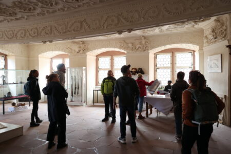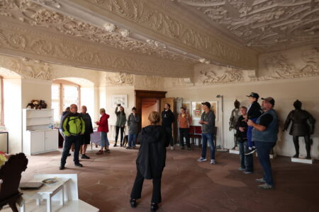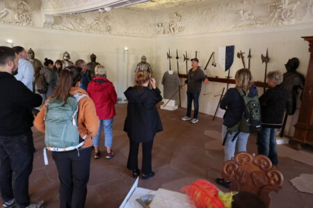 Mit viel Spaß und Fachwissen bringt er uns Burgtouristen das Leben der Vergangenheit näher. Neben der Herkunft vieler Sprichworte erklärt er sehr anschaulich, wie die Burg verteidigt wurde und wie das Leben und Denken in der Vorzeit so war. Da könnte sich manch Geschichtslehrer abgucken, wie Didaktik funktioniert …