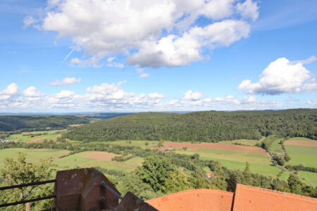 Nach dem Burg-Rundgang essen wir eine Kleinigkeit in der Burgschenke, dann geht’s zurück zu unserem Wohnwagen auf dem Campingplatz in Fischbachtal, wo wir noch enen Spaziergang machen.